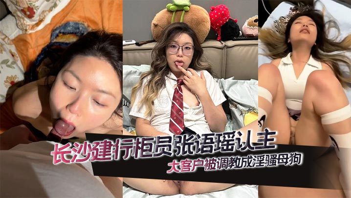 长沙建行柜员张语瑶认主大客户被调教成淫骚母狗 深喉添屌技艺高超多姿势爆操 高潮眼神迷离欲仙欲死!
